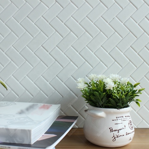 モザイクタイルシートセラミックホワイトストリップヘリンボーンパターンキッチンシャワー寝室浴室壁背景用